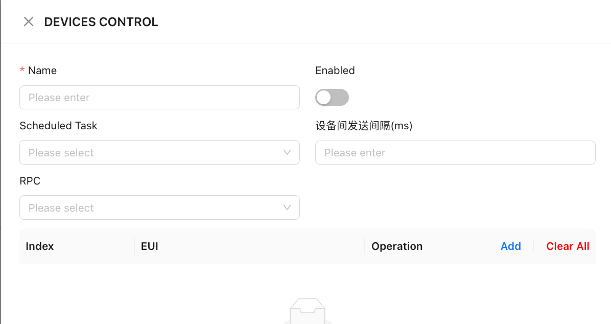 - Execution Settings + Device Send Interval (for batch operations): Sets the time interval between device executions.