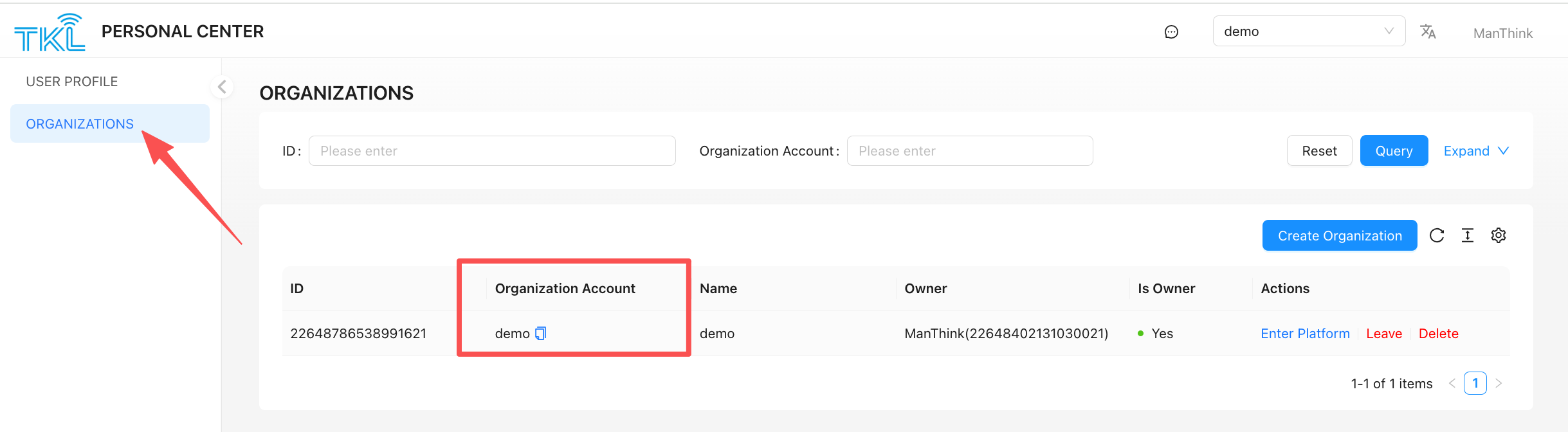 {Organization Account}with your own organization account, which can be found in the corresponding organization in the Personal Center.
