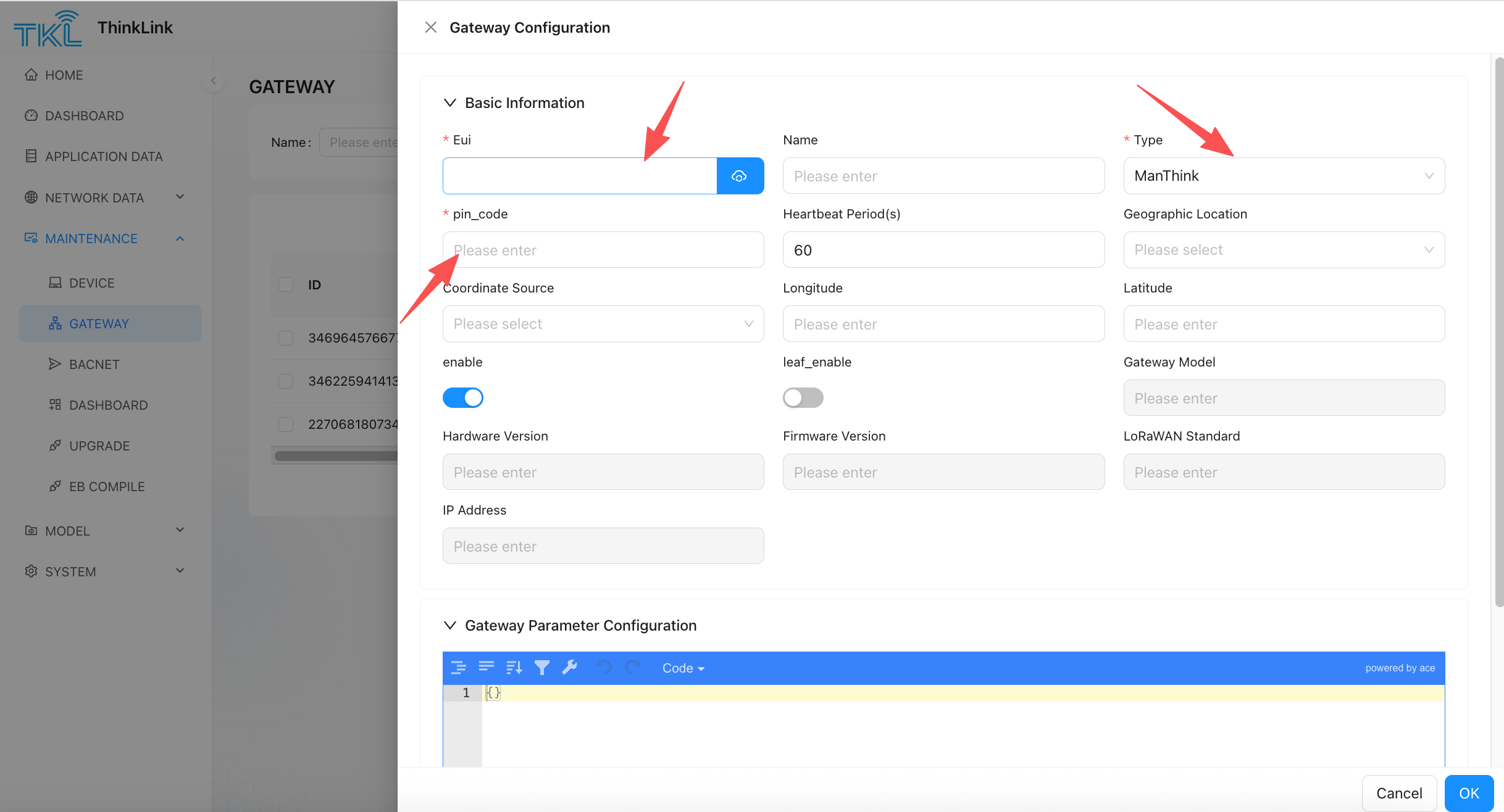 typedrop-down menu to selectManThink. - If used third-party gateways that support the GWMP protocol, please select