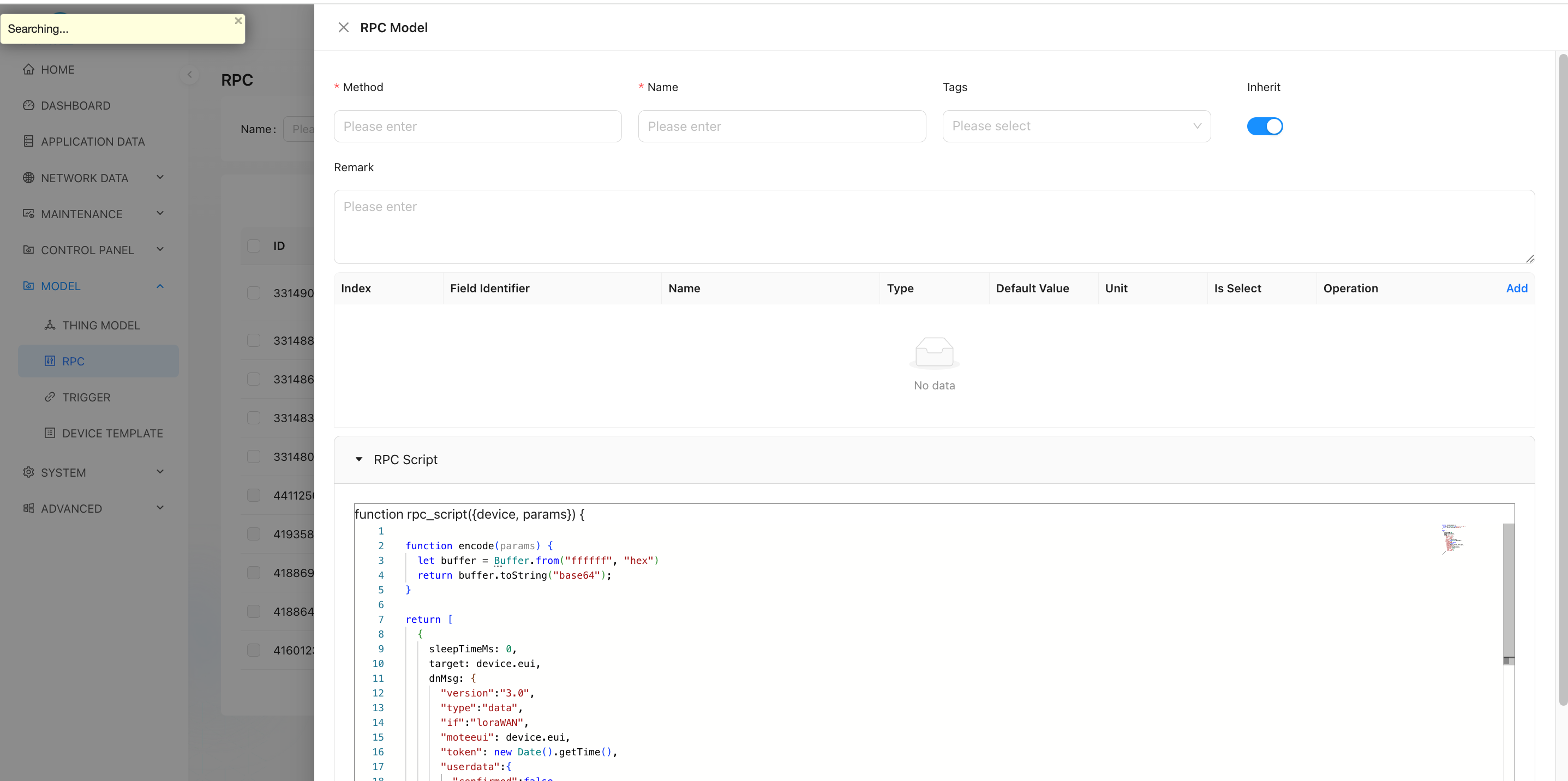 - enter model management → RPC model → Add.