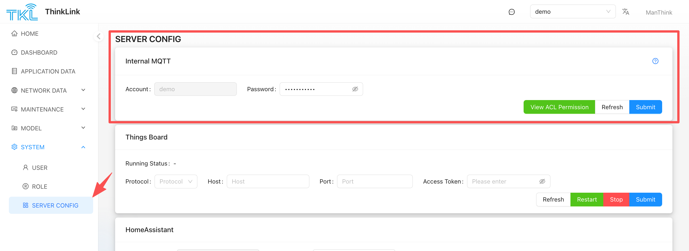 thinklink.manthink.cn:1883(For TKE or independent deployments, please contact the deployment engineer.) - Password: Set when the organization is created.