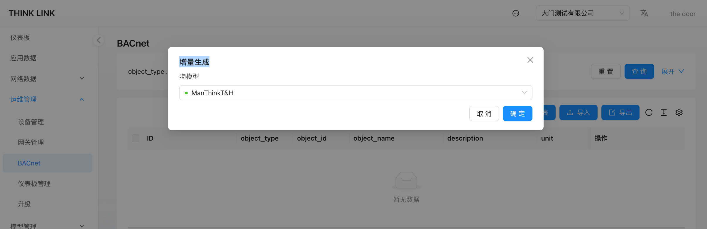 - 进入运维管理 → BACnet 模块。