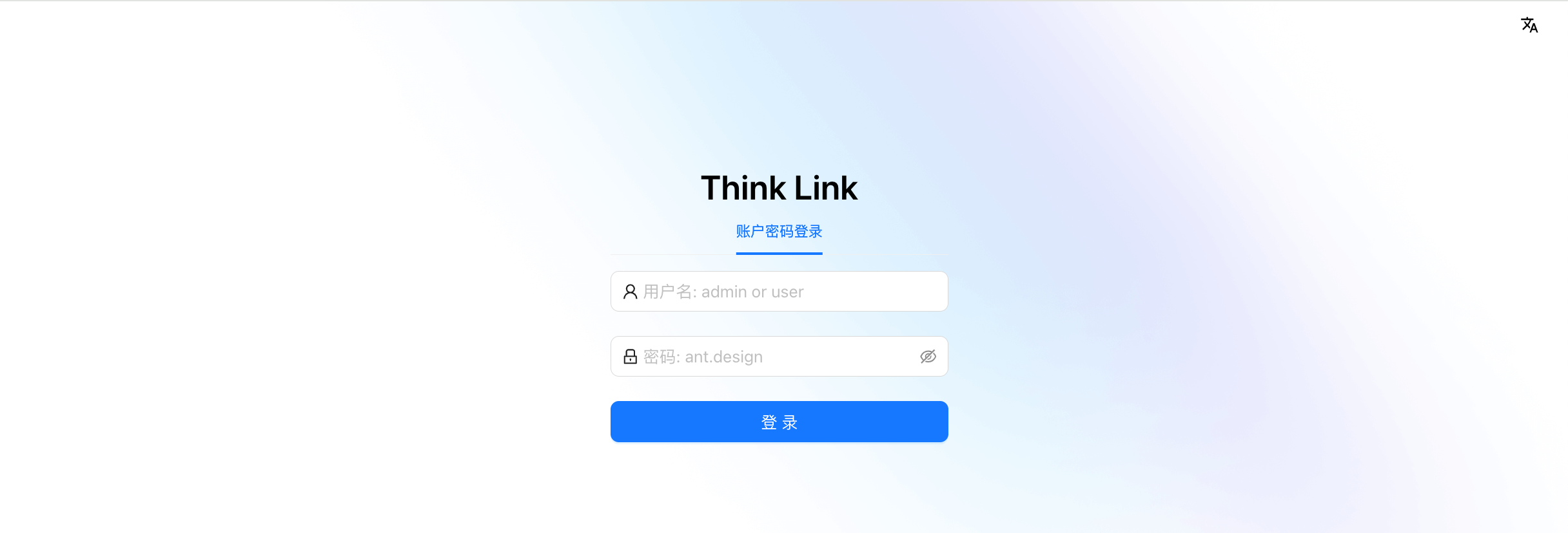 ThinkLink 默认登录的用户名为admin,默认建立的组织账号为mtfac,账号密码为: