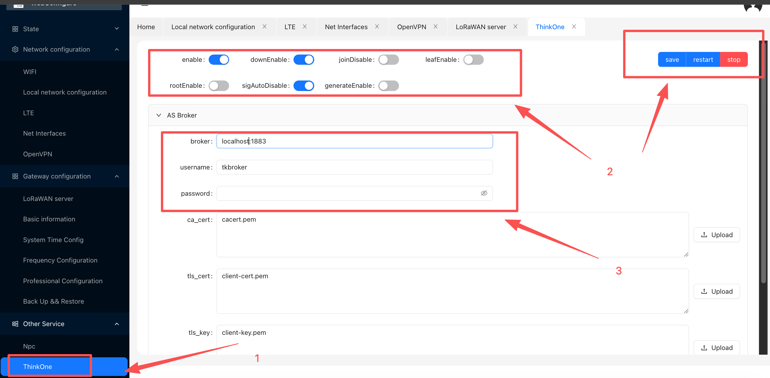 默认网关内部的ThinkOne是打开的,但是 downEnable是关闭的,主要为了避免网关连接到其他NS上之后导致的数据双发。