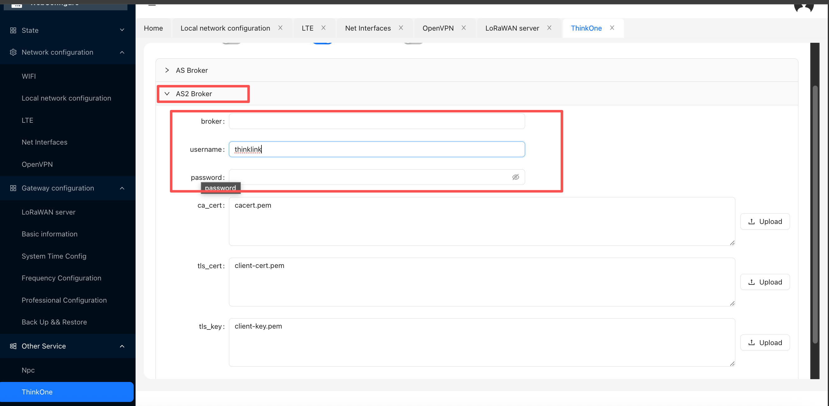 如需要将AS数据推送至第三方平台,可以在网关内部配置AS2的broker信息即可将数据推送至第三方。注意AS2的信息不支持下行数据。
